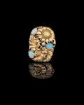 Pre-loved 14k Yellow Gold Genuine Opal & Diamond Accented Sunflower Fashion Floral ring