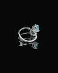 14k White Gold 2-Stone Swiss 7 London Blue Topaz w/.15ctw Pave Diamond Accents