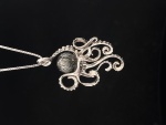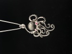 Sterling Silver Designer Octopus w/7mm Tahitian Hand Carved Pearl & .05ct Ruby Eyes
